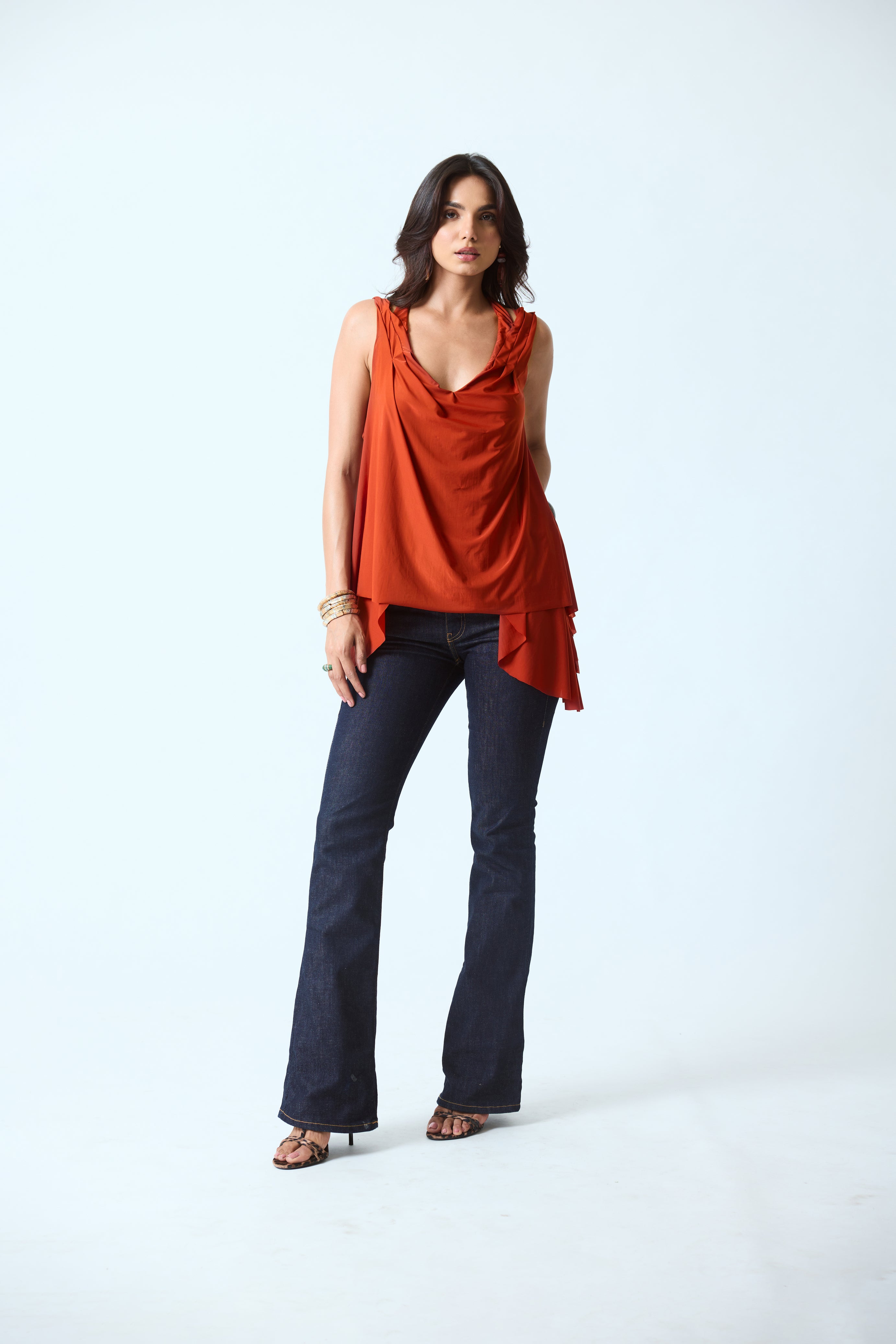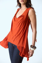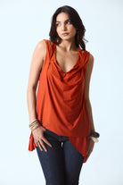Draped sleeveless top with a soft cowl neckline