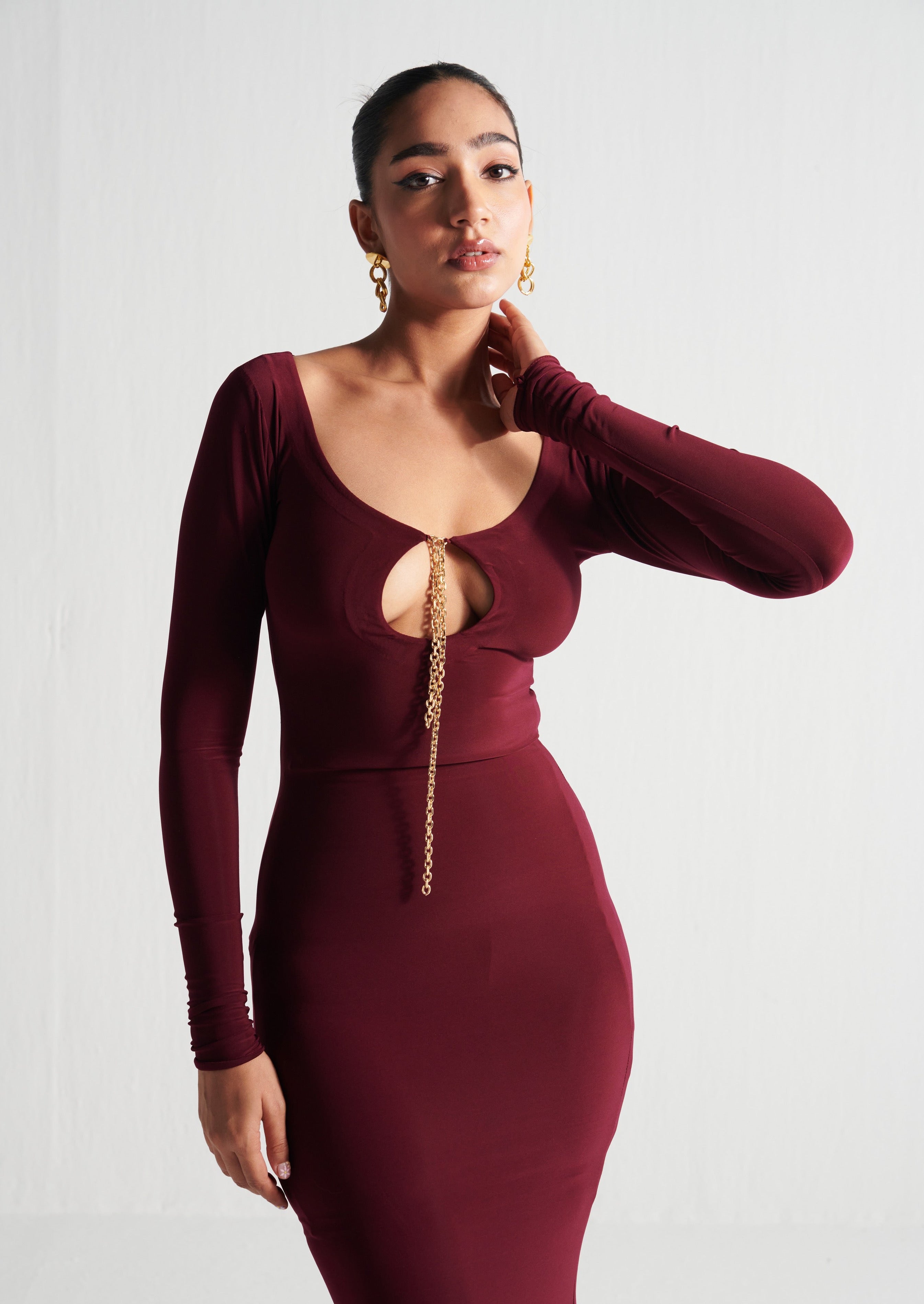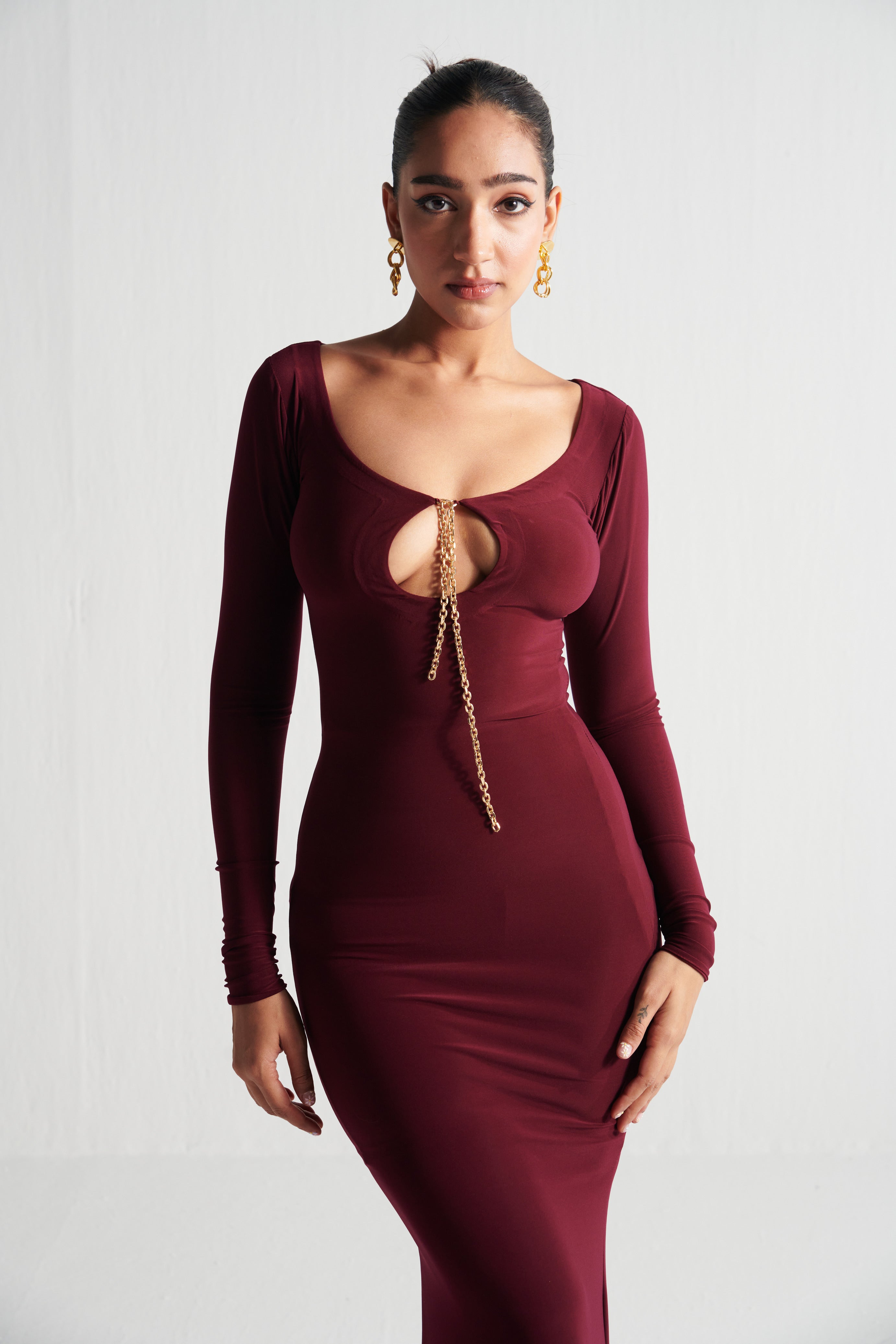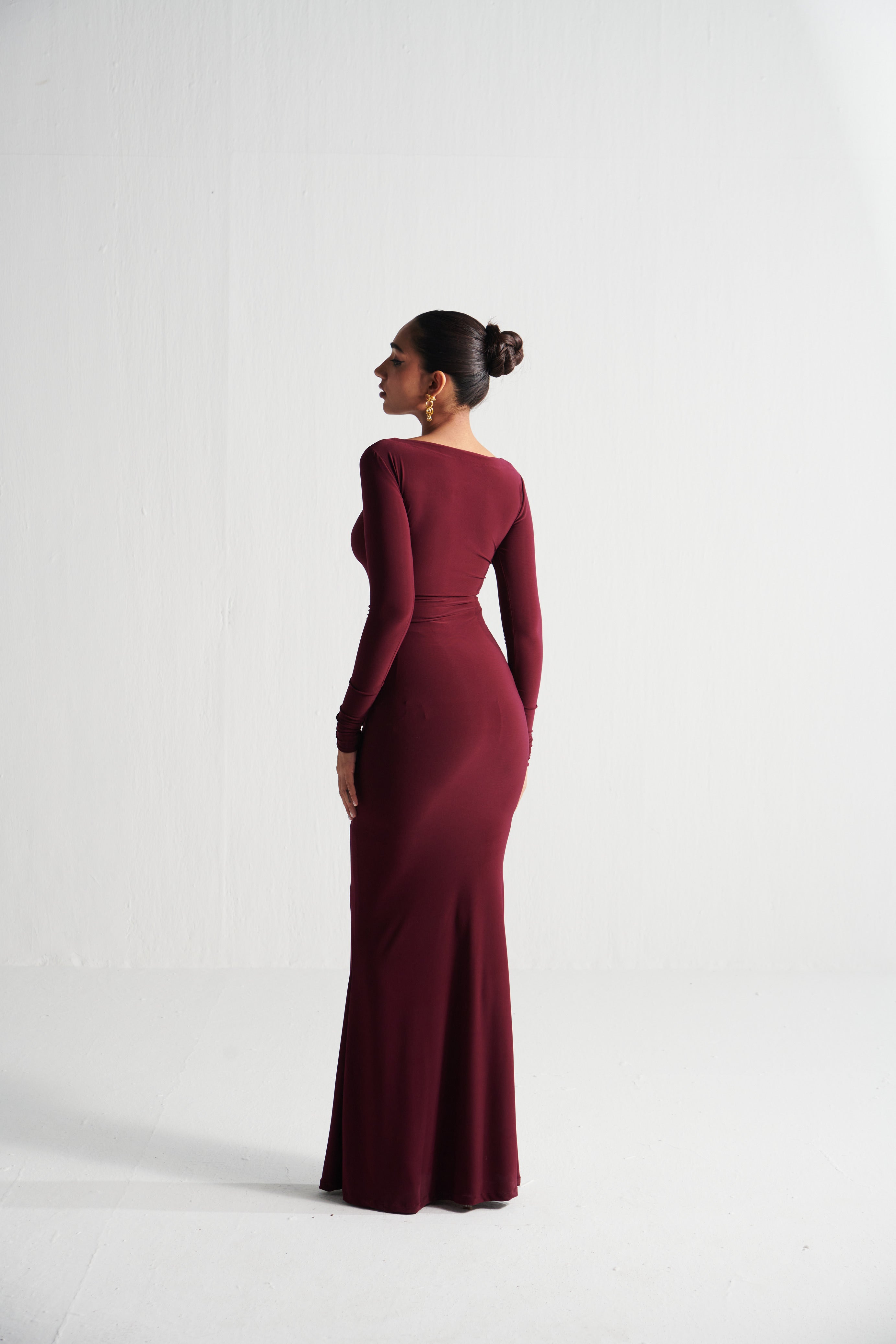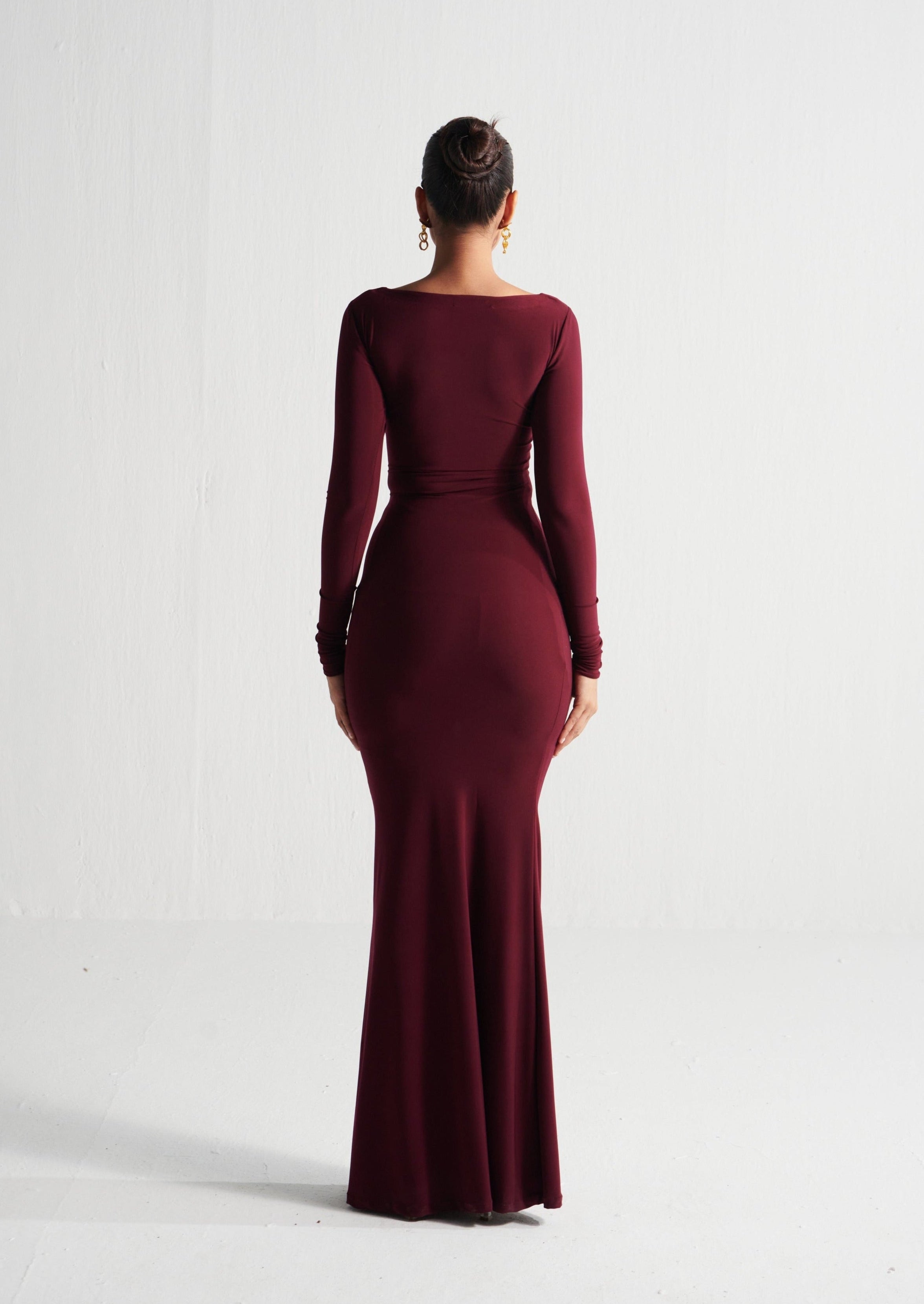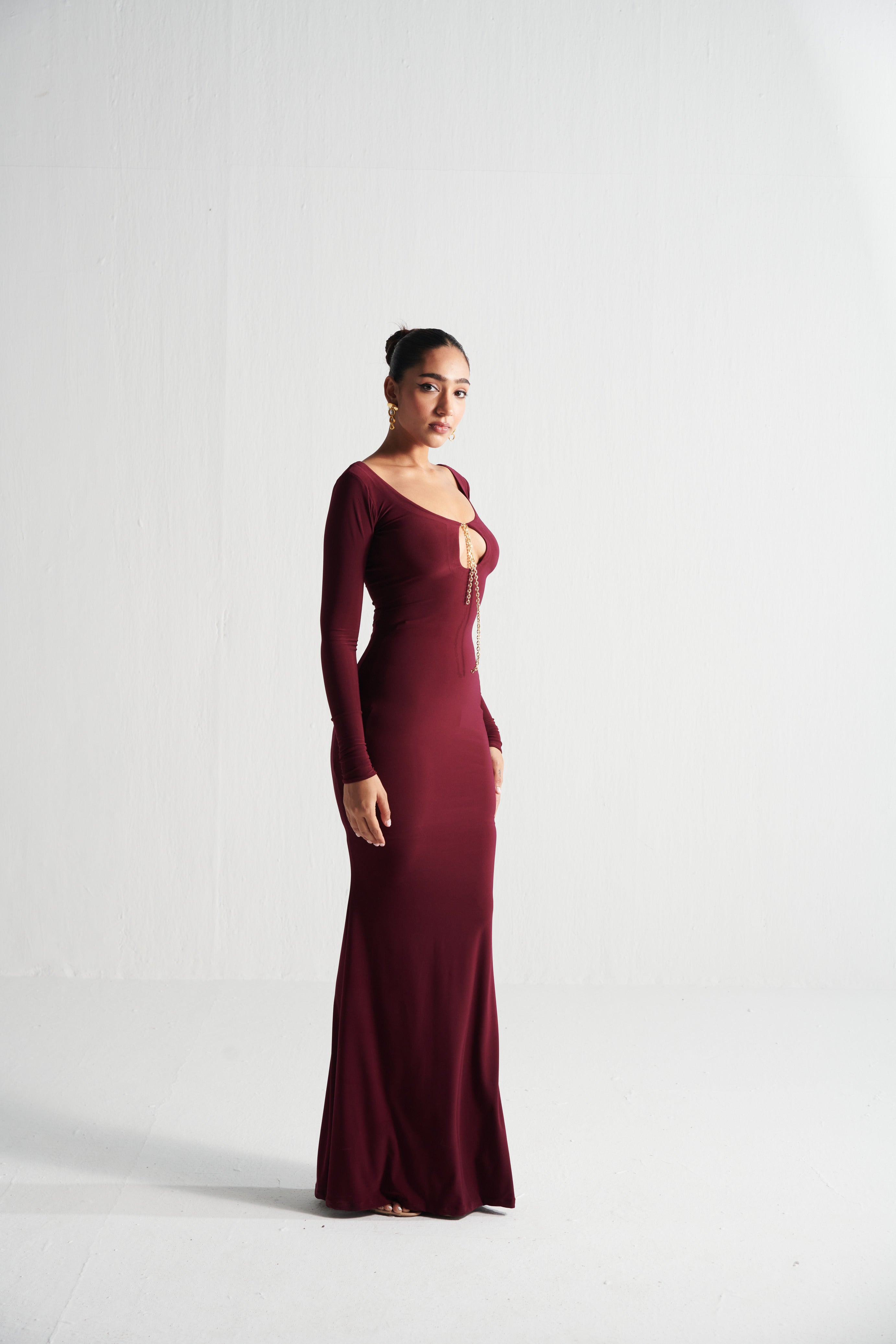 CRIMSON DRAPED DRESS