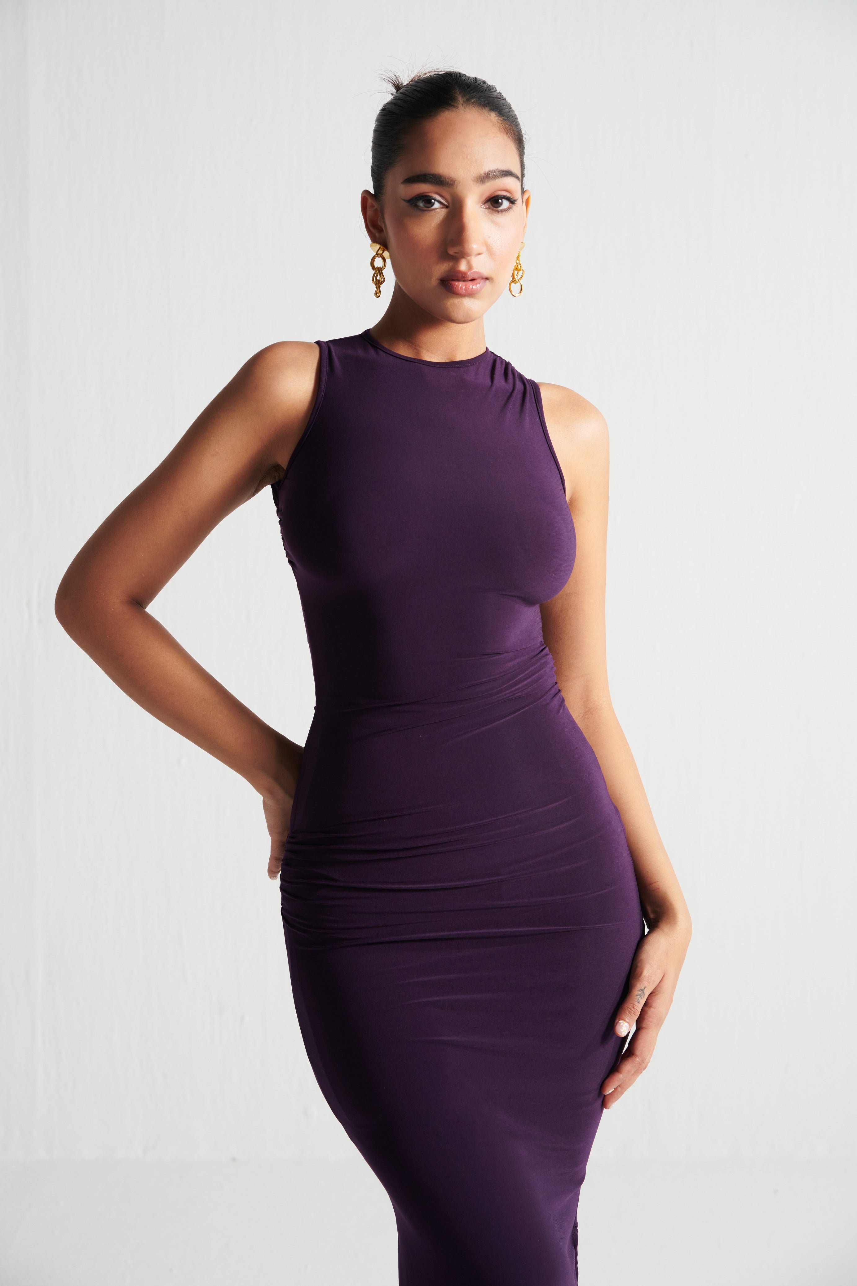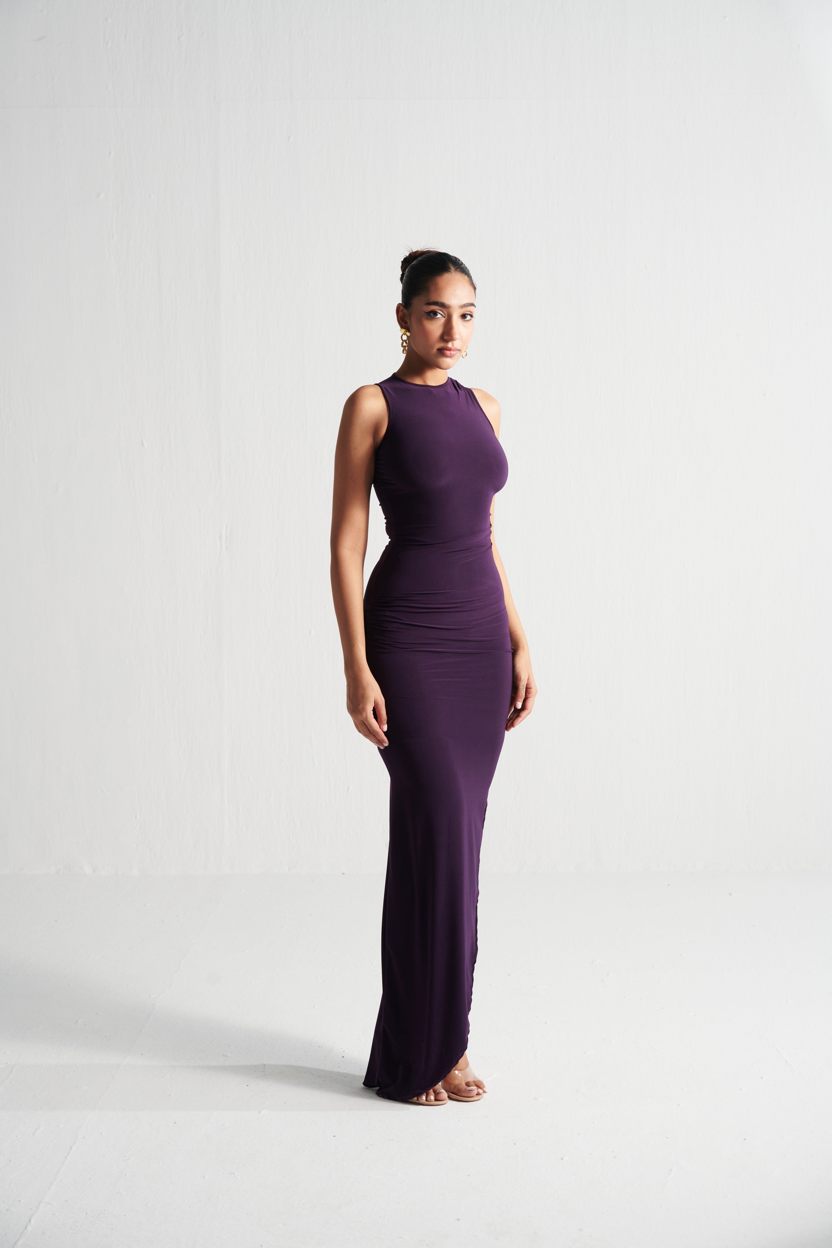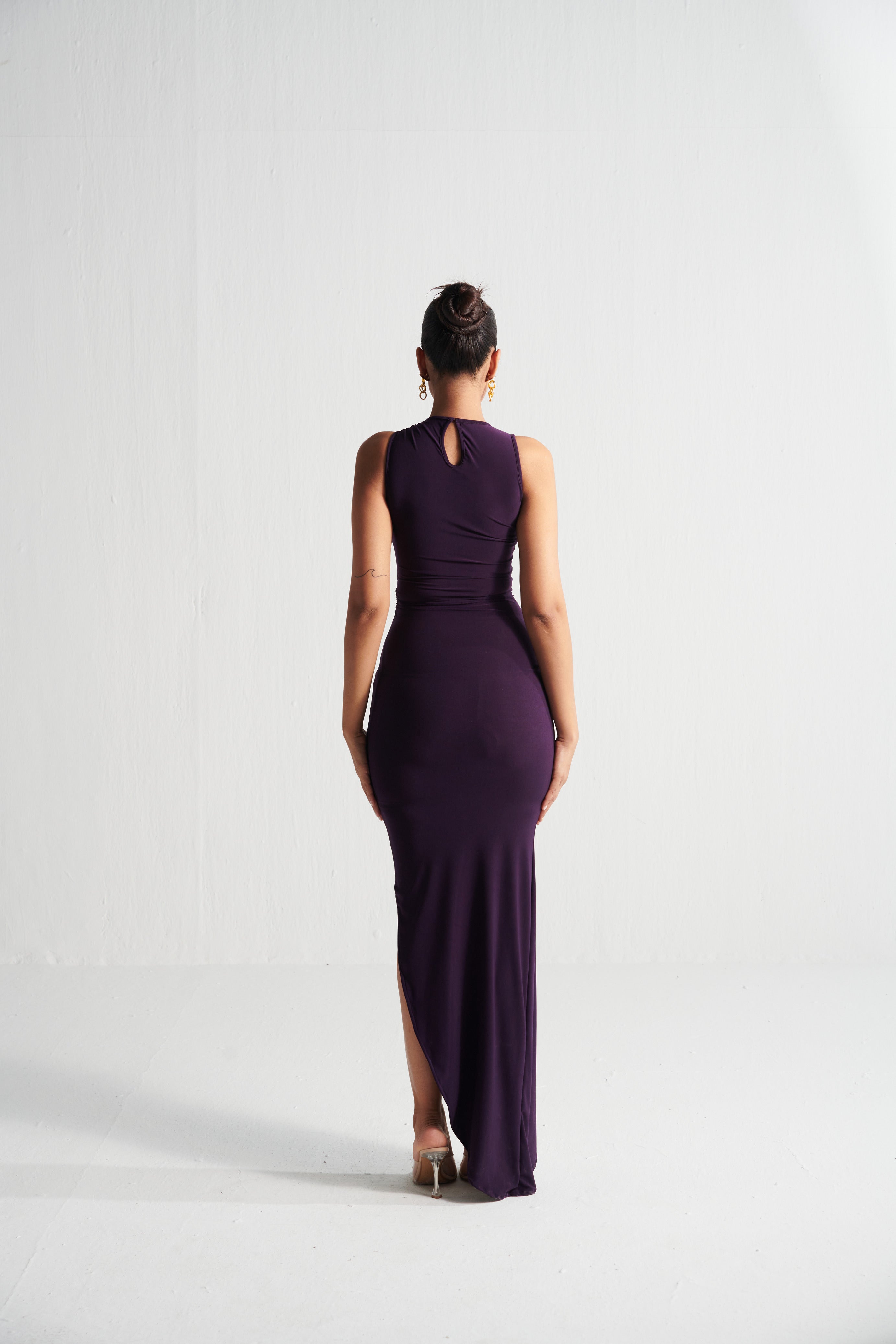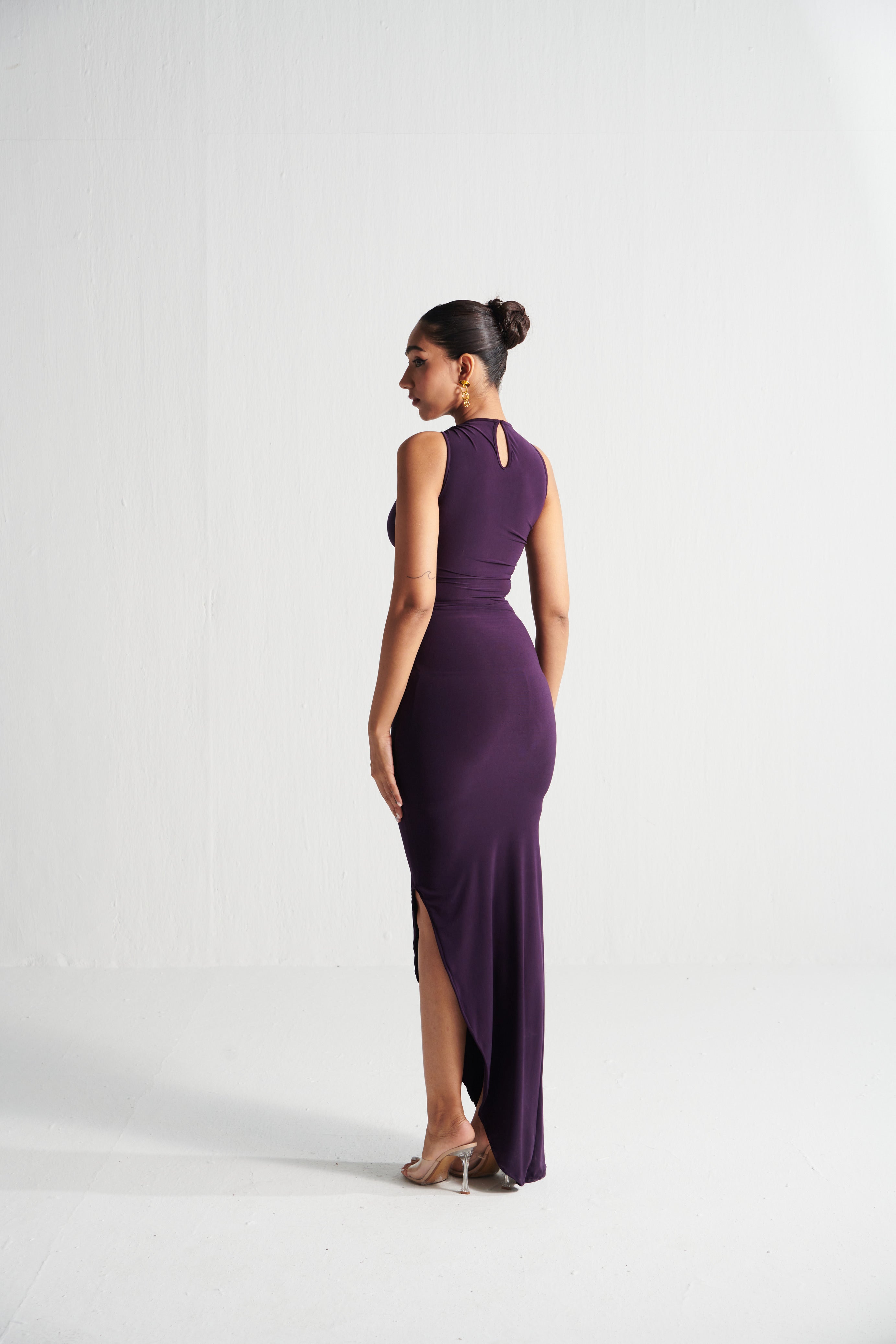 Effortless seduction meets sculpted minimalism. The Grape Asymmetric Dress is all about clean lines, a curve-loving fit, and subtle drama—perfect for nights when less is more.