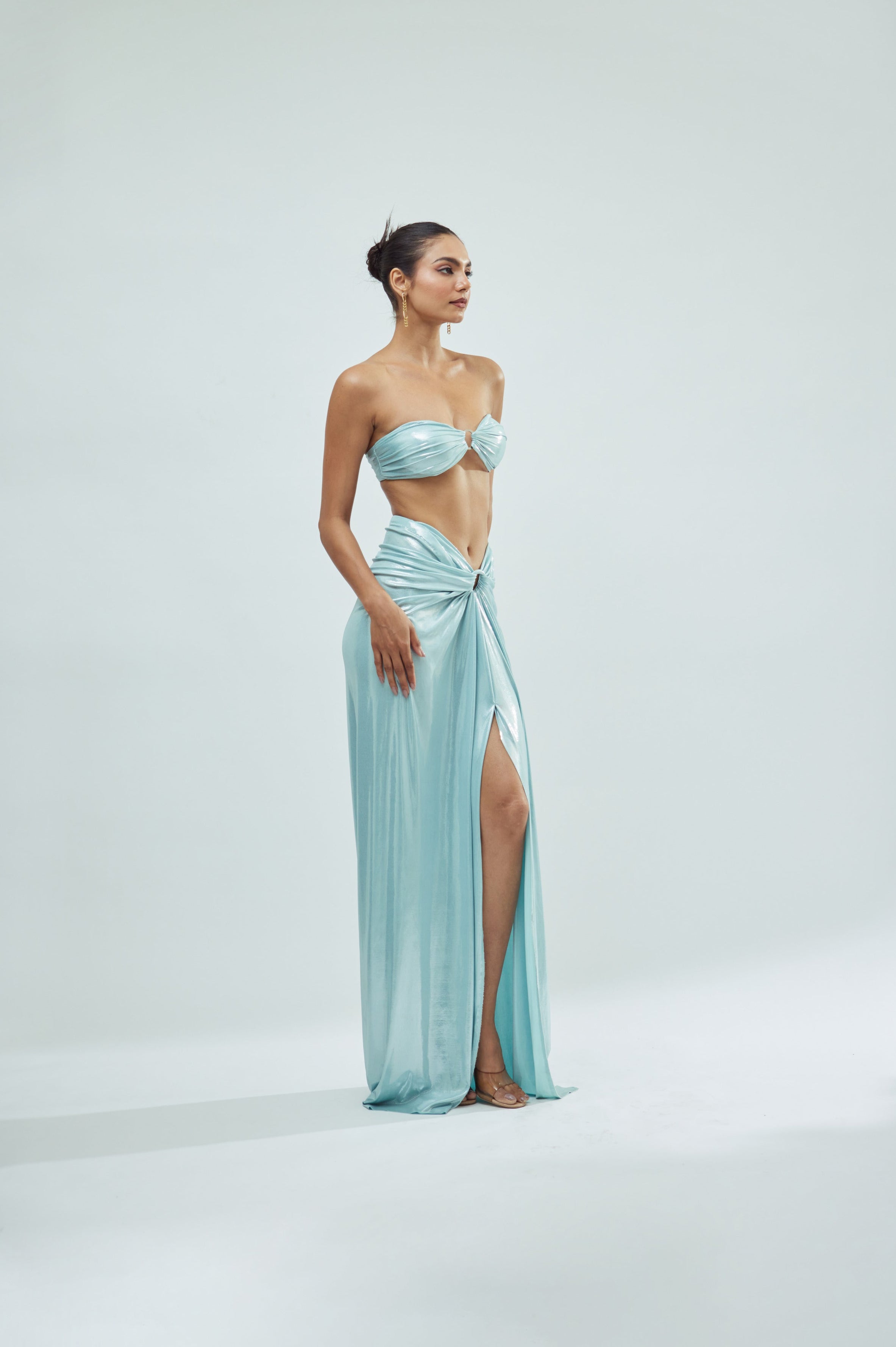 Designed to command attention, the Chrome Skirt blends sensual structure with a high-shine finish. A statement piece for elevated evenings and spotlight moments.