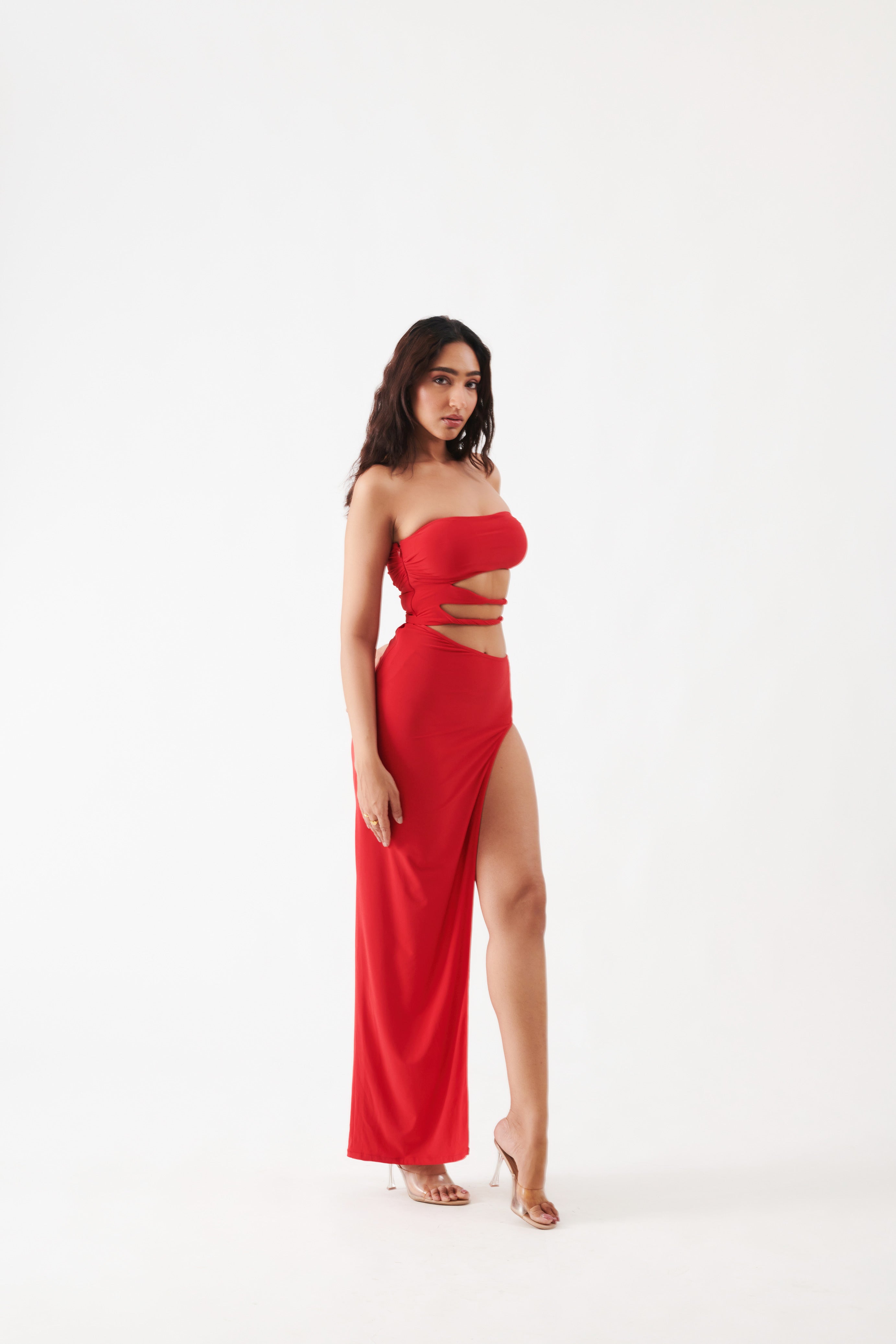 Make an unforgettable entrance in the Scarlet Sultry Dress—a bold bodycon crafted for after-dark glamour and unapologetic allure.
