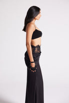 - Intricately adorned with black Rhinestones and beading, scattered across the back of the hand and fingers.