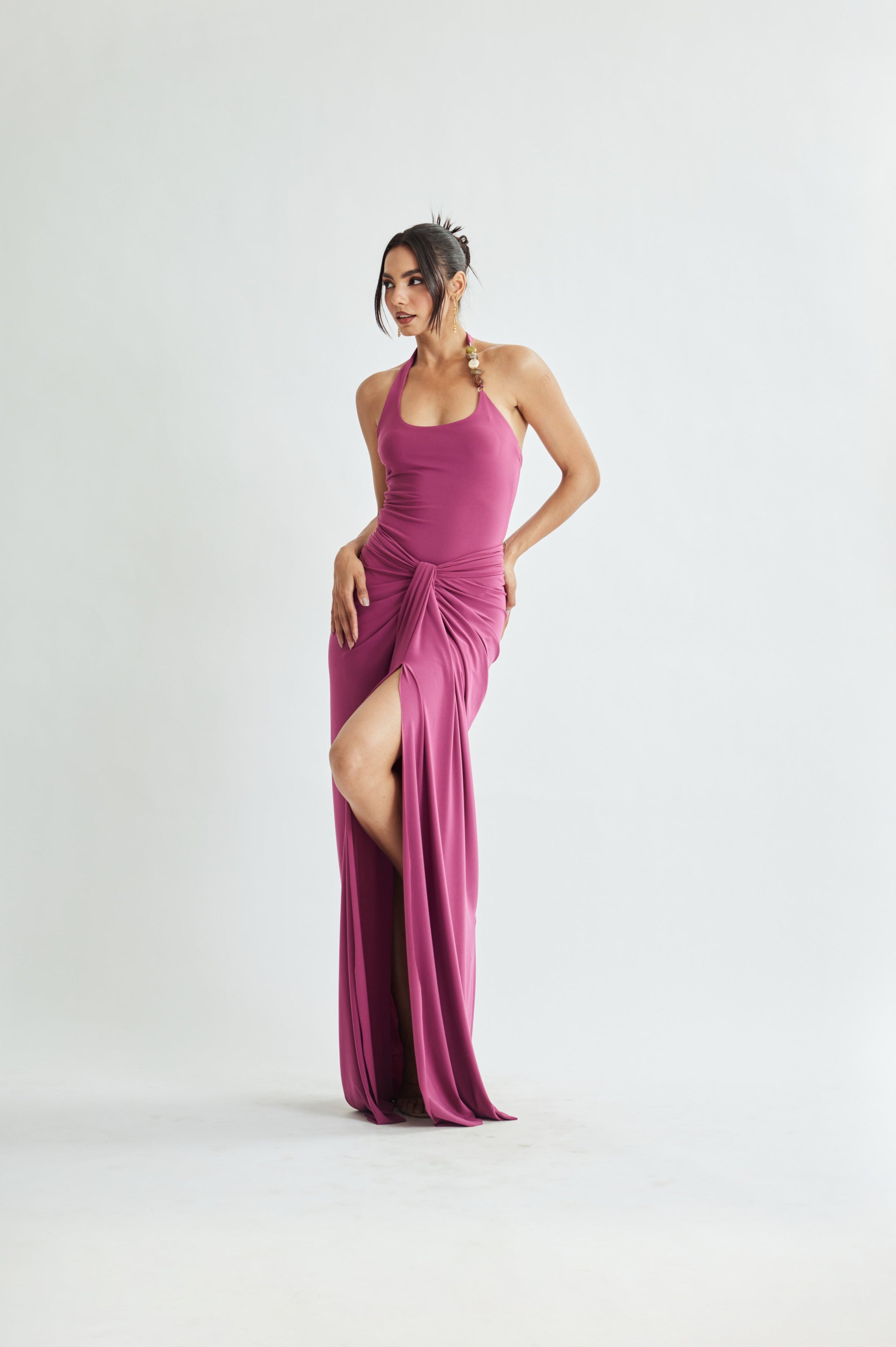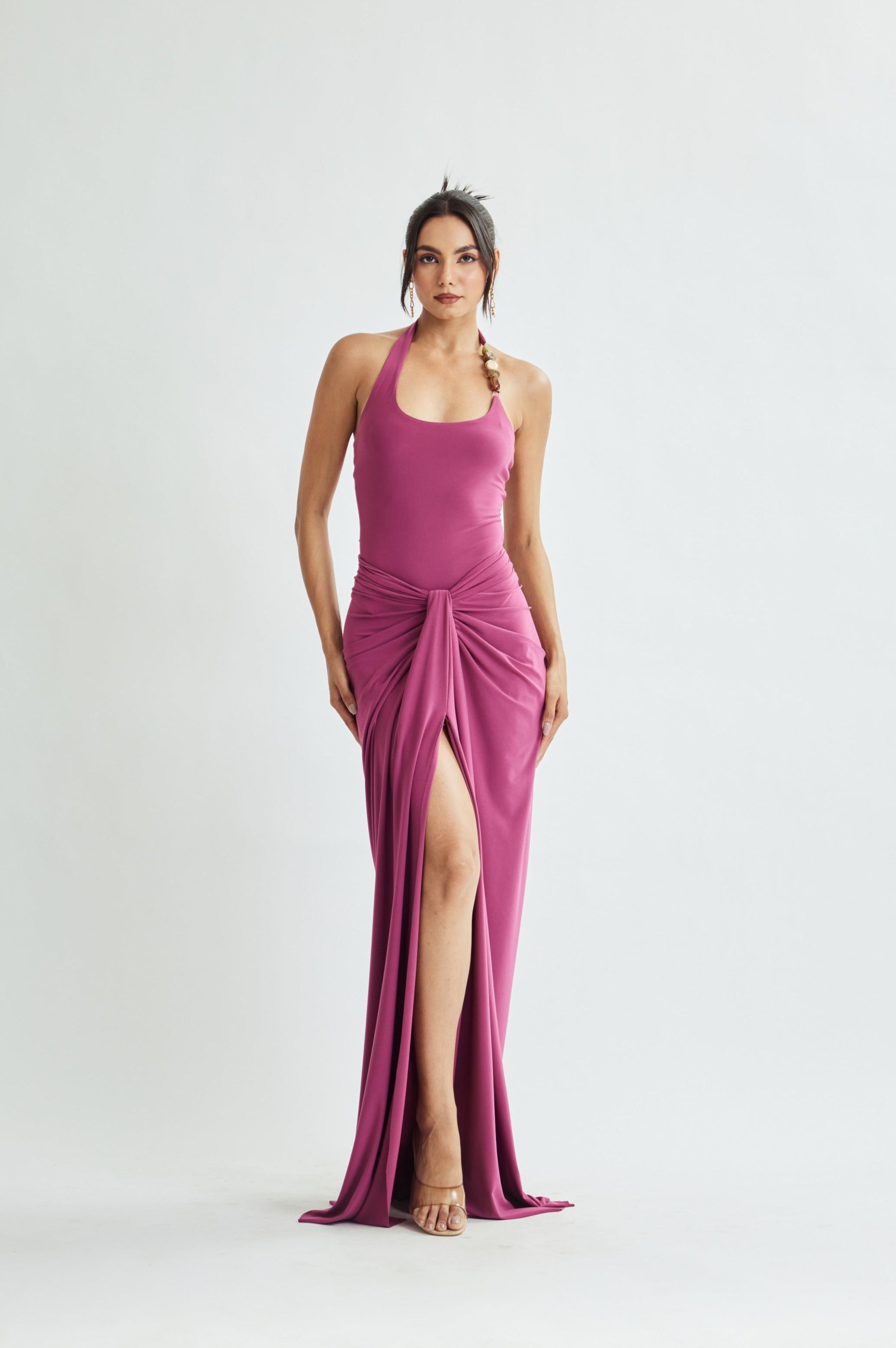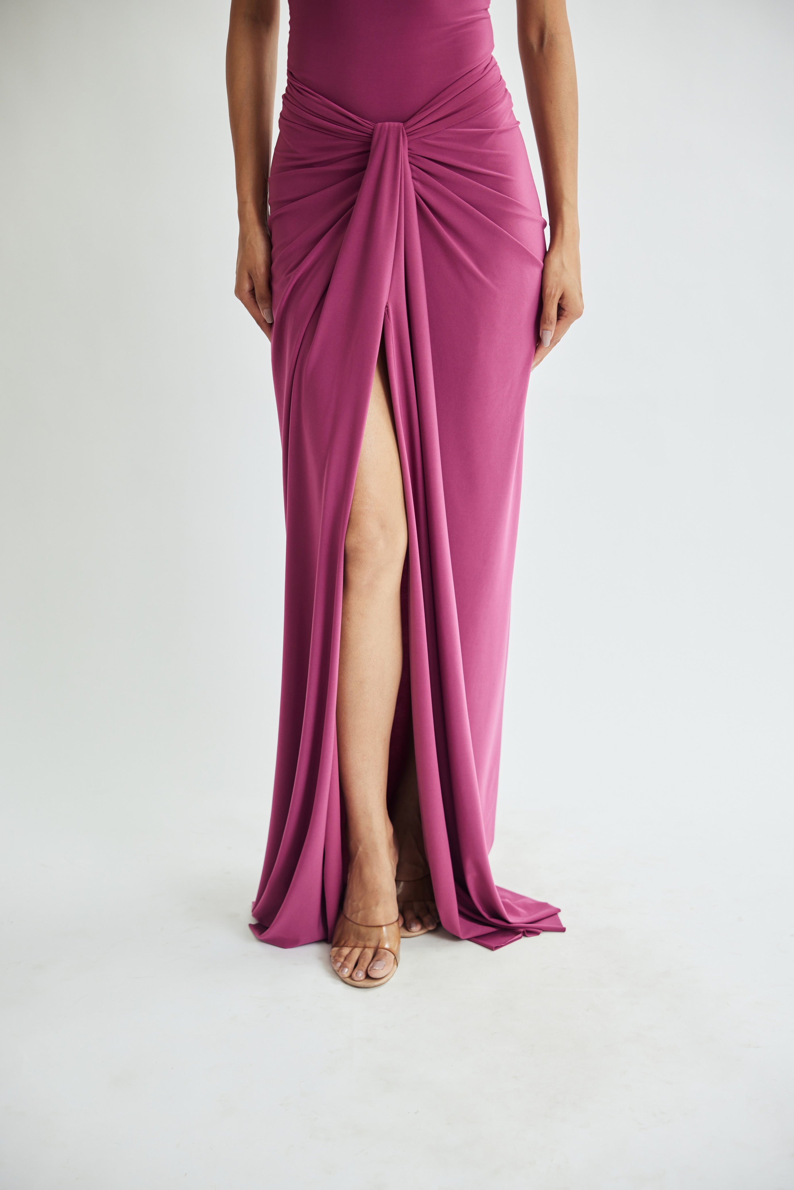 Sleek, sculpted, and effortlessly elegant—the Jamun Skirt is made to elevate your curves with statement draping and a clean, floor-grazing finish.