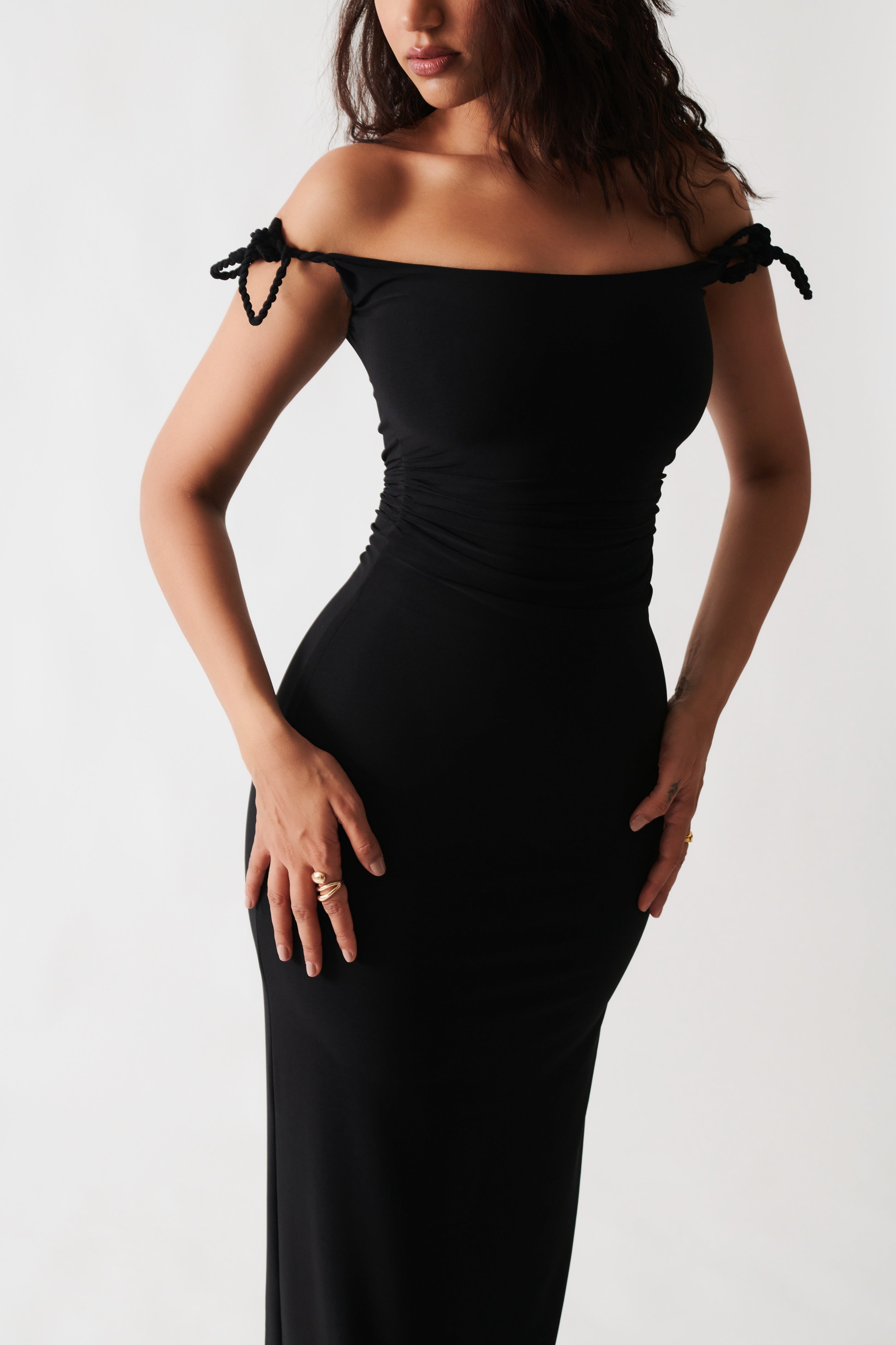 Minimal, sleek, and impossibly flattering — the Black Cord Dress is your statement-making essential. With a curve-accentuating fit and edgy corded straps, it’s made for nights when less is more.
