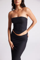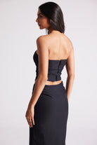 - Fitted bandeau top with curved hemline
