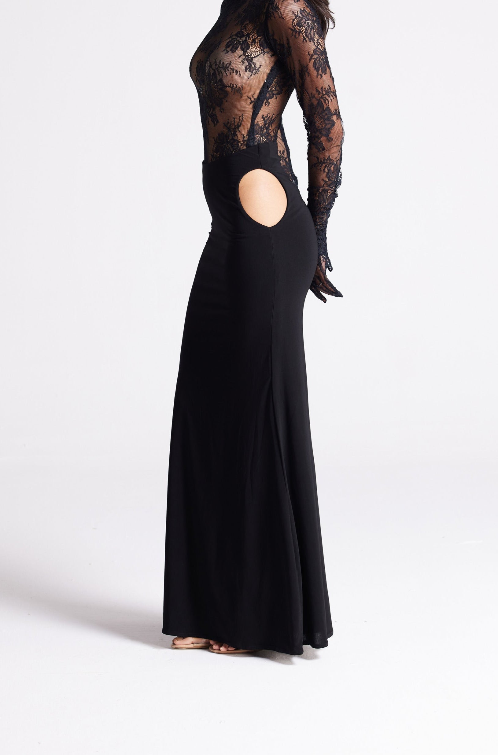 Sleek and sculpting, the Tank Skirt features daring side cut-outs at the waist balanced with a streamlined floor-length silhouette. Modern and minimal, it’s a statement piece designed to flatter while adding a bold edge.