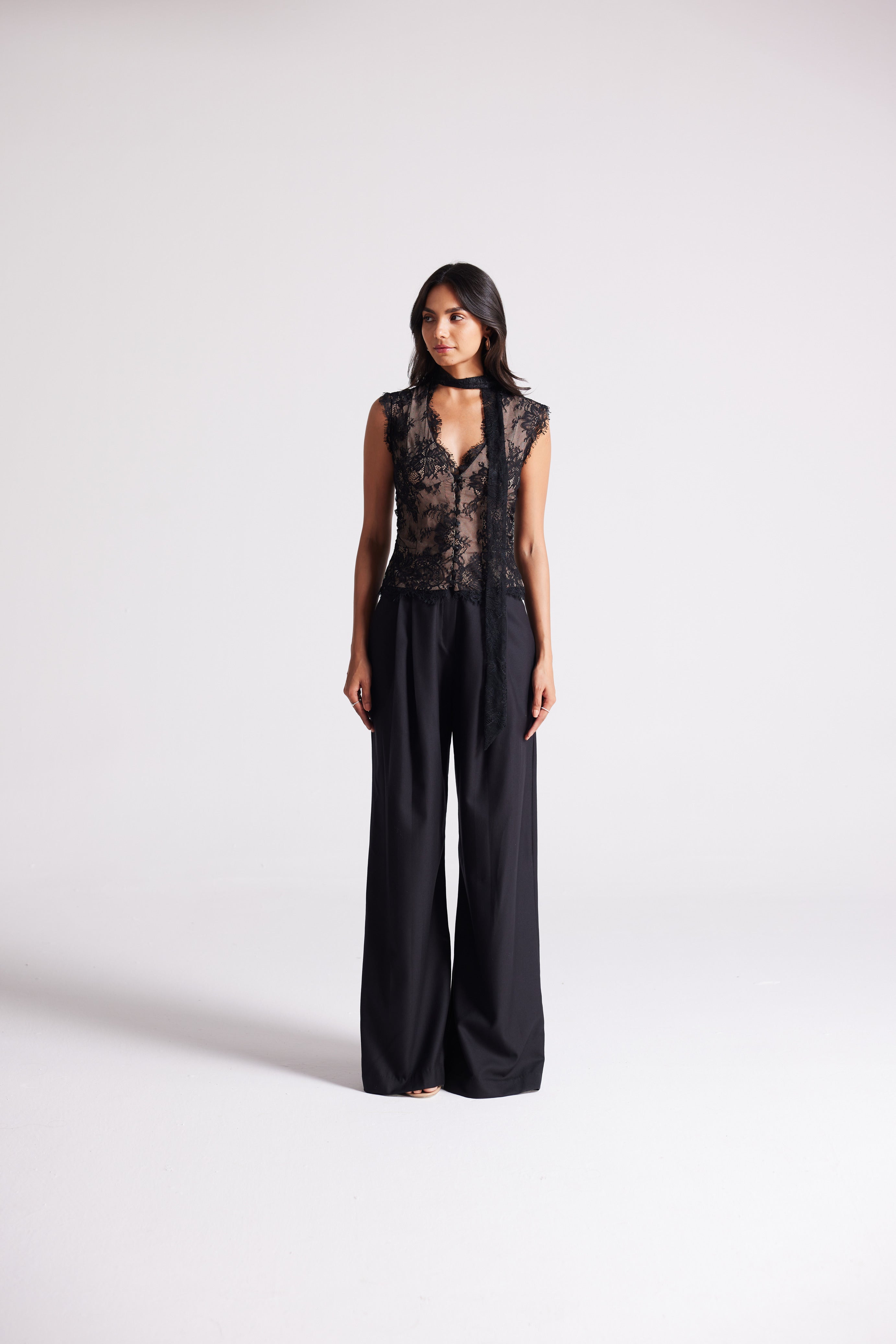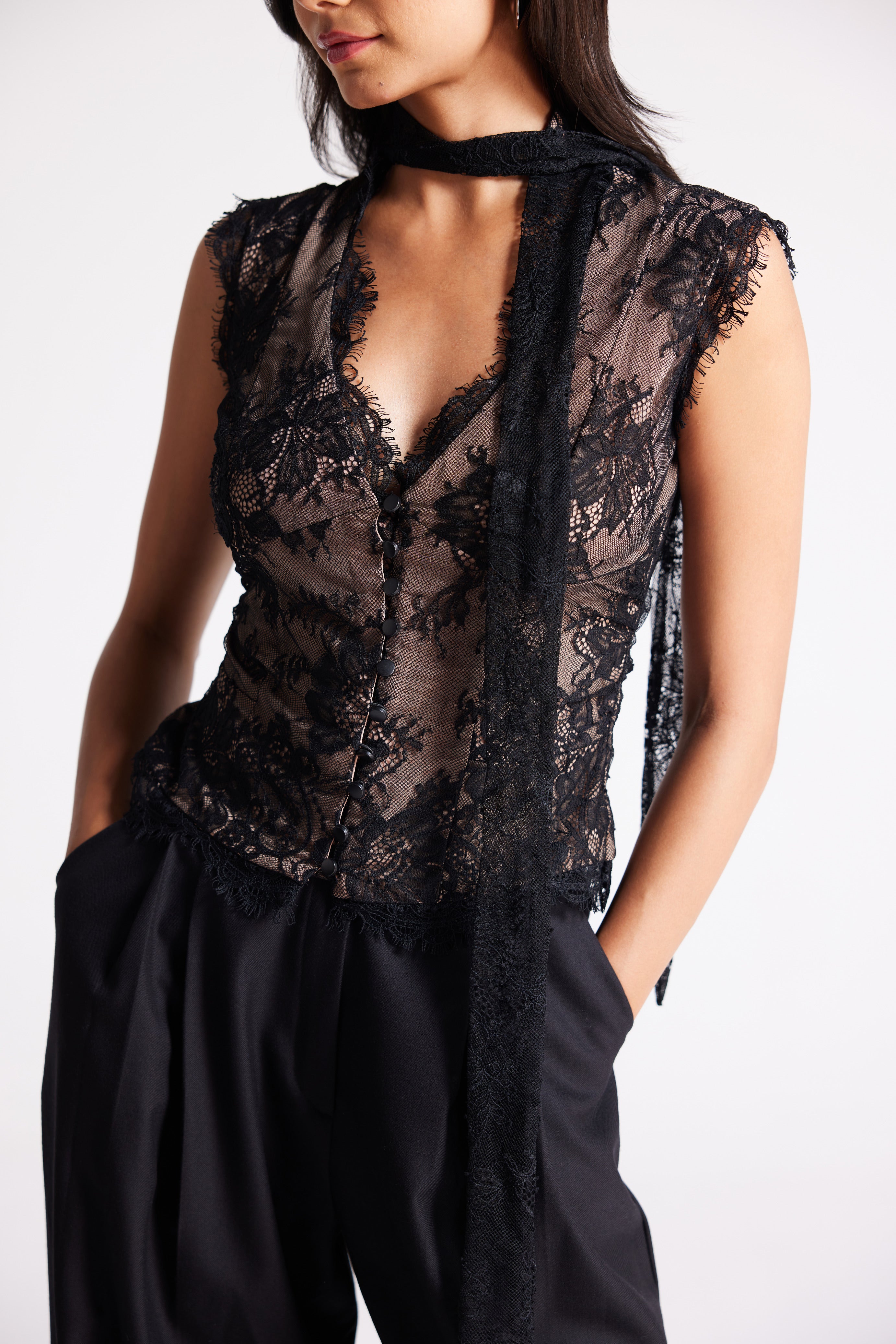 - Lace tie at the neck