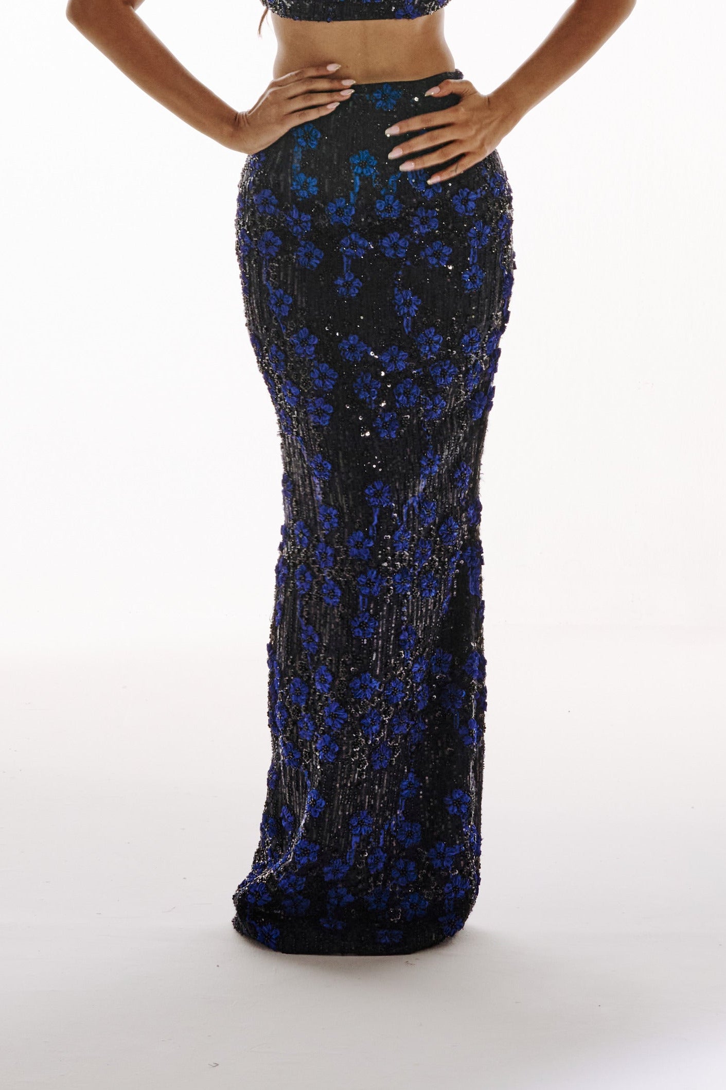 Yashvika, with a 33" chest, is wearing a custom sample closest to size S/8. For length details, please refer to the size guide.