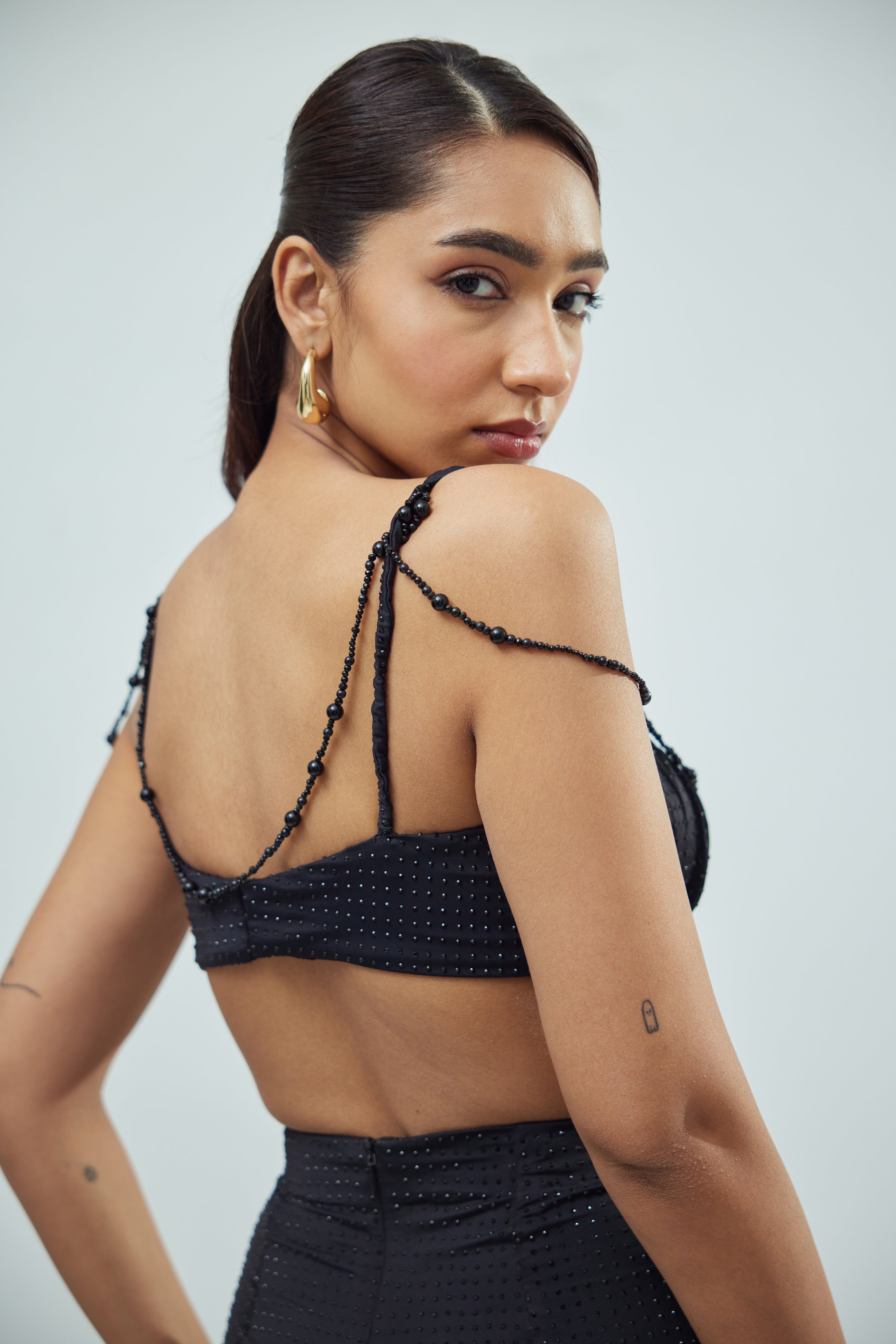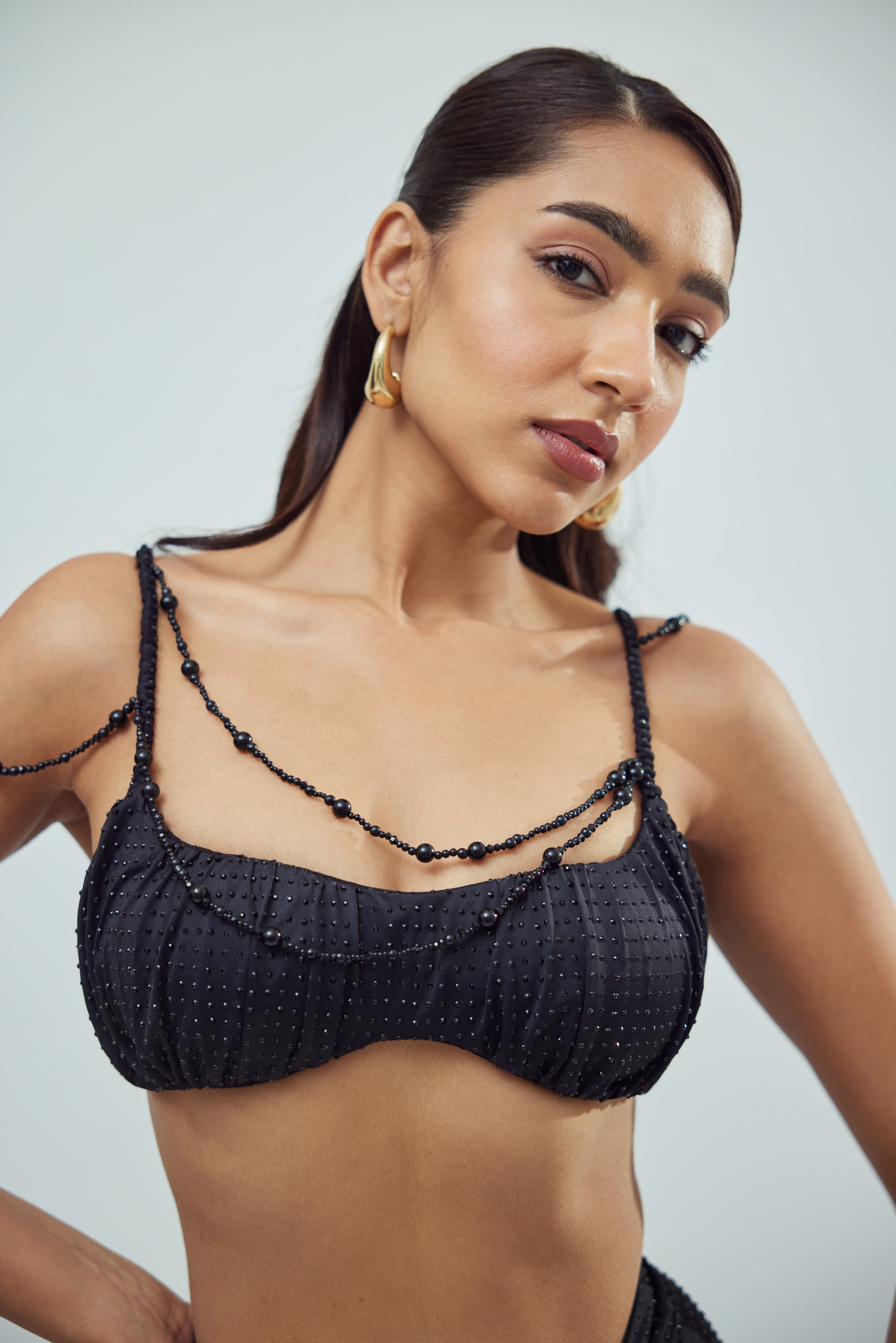 BLACK SWATHE TOP