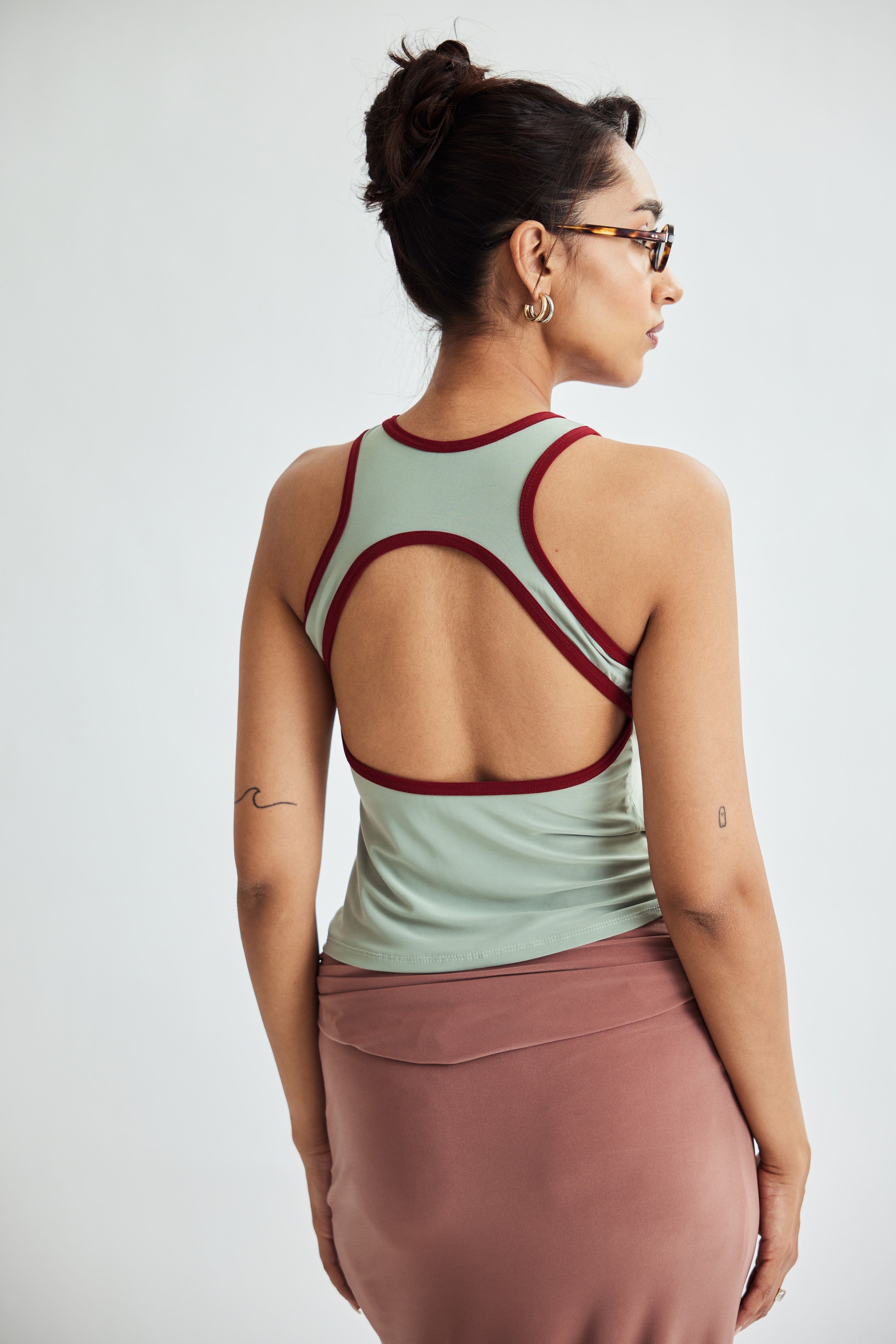 A bold update to your basics—The Pistach Tank blends sleek coverage with sultry tie-up detailing. Made for effortless styling, day or night.